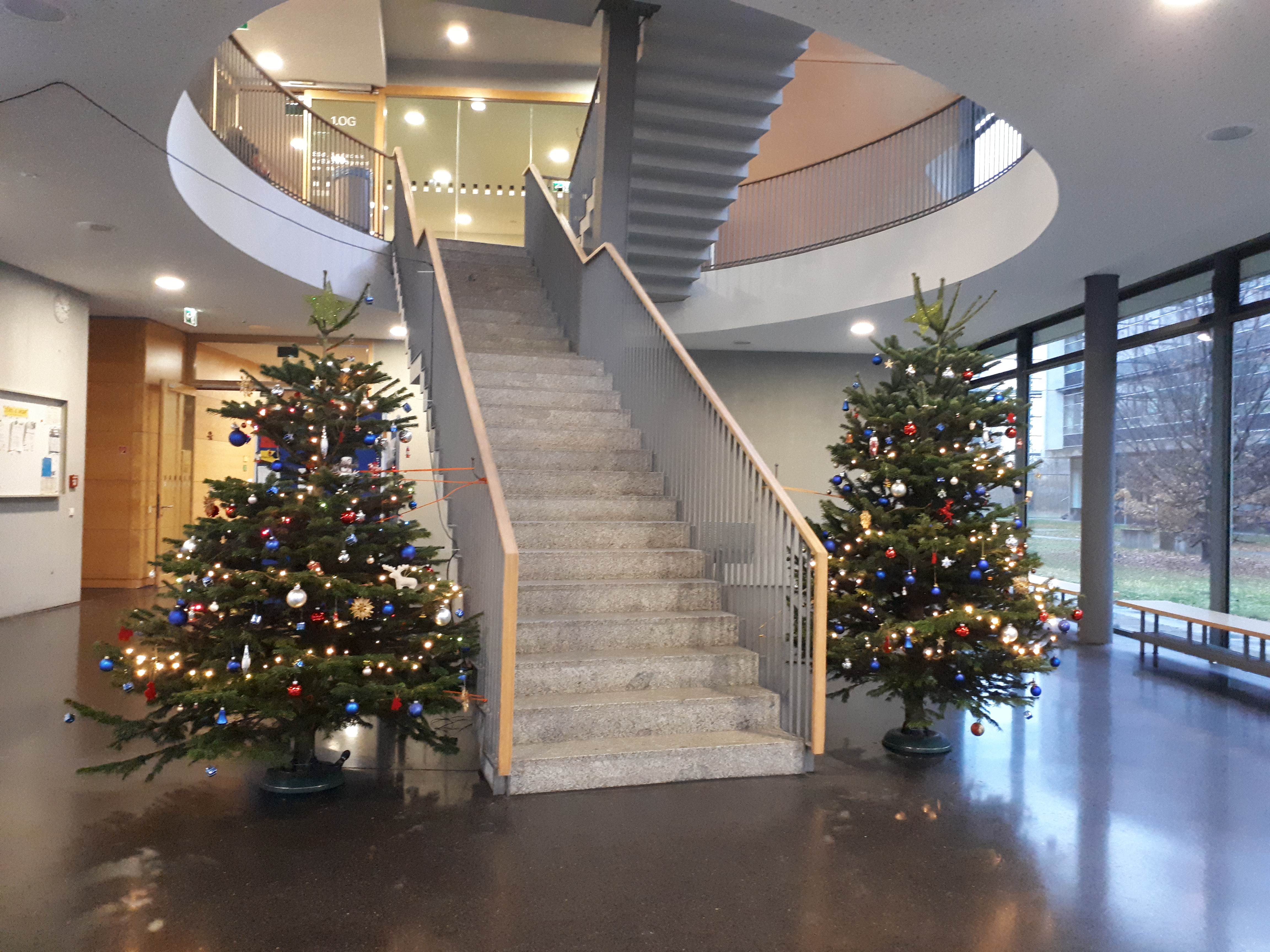 Auch bei uns an der Schule weihnachtet es schon sehr, dank der Weihnachtsbäume der Landeshaupstadt München sowie großzügigen Baumschmuckspenden vom Kollegium.